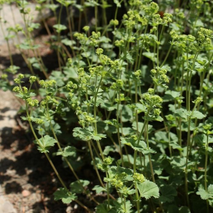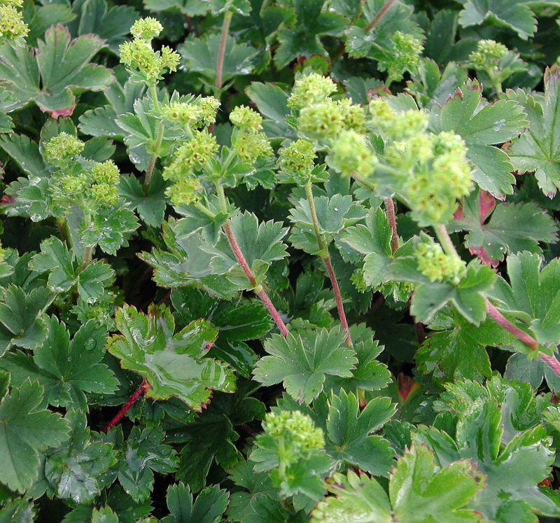 Alchemilla Alma ist eine kleinere Staude mit malerischen, weichen, leicht behaarten Blättern. Im Morgentau fangen sich die Wassertropfen nostalgisch auf ihnen. Der Wuchs ist kompakt und die Blüten sind gelb-orange und erscheinen im Frühsommer.</p
