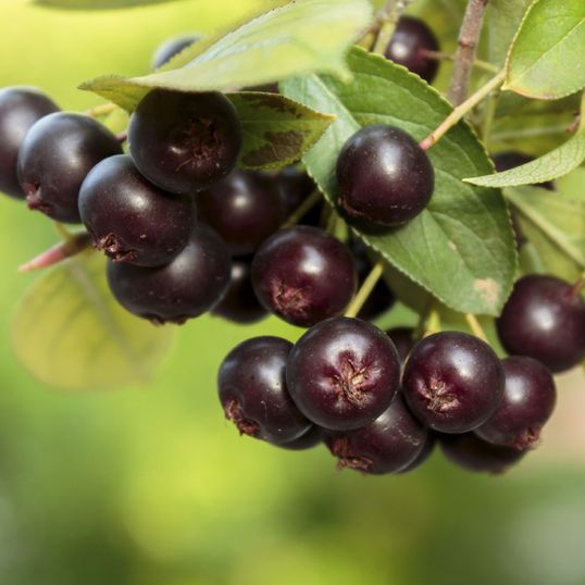 Die Beeren sind eine Vitaminbombe, Umsätze bleiben in der Kälte und im Dunkeln 2 Monate oder länger frisch. Es ist ratsam, sie nach dem ersten Frost zu ernten. Der Ertrag beträgt bis zu 65-70% und der Most ist nicht verderblich. Aus getrockneten Äpfeln und Aroniabeeren wird ein Früchtetee hergestellt. Die Früchte werden zu Kompott, Marmelade und Saft verarbeitet und natürlich frisch verzehrt. Im Herbst färben sich ihre Blätter in verschiedenen Rottönen. Im Frühjahr blüht sie üppig mit schneeweißen Blüten. Die schwarzen, essbaren, etwa 1 cm großen Früchte reifen ab Ende August und sind anspruchslos, benötigen aber einen durchlässigen Boden und einen sonnigen Standort.