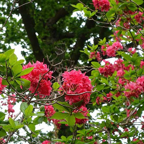 Die Azalee HOMEBUSH ist eine der schönsten verholzenden Azaleen mit großen, langstieligen Blüten in einem auffallenden Rosa. Die Blüten wachsen kugelförmig und bilden zusammen mit dem attraktiven grünen Laub einen interessanten Kontrast. Sie blüht von Mai bis Juni und wird bis zu 2 m hoch und genauso breit. Laubabwerfende Azaleen sind Heidepflanzen, die im Gegensatz zu den japanischen Azaleen volle Sonne lieben, sofern wir ihnen einen gleichmäßig feuchten, sauren Boden mit einem pH-Wert zwischen 4 und 5 bieten. Sie bevorzugen einen leichten, nicht kalkhaltigen, durchlässigen Boden mit Torf, Kompost und einer holzigen Mulchschicht an der Oberfläche. Schwere Böden werden durch Zugabe von Sand und feinem Borax aufgehellt. In schweren Lehmböden ist eine gute Drainage wichtig. Schneiden Sie die Blütenbüschel sofort nach der Blüte ab. Die Wurzeln dürfen nicht austrocknen.