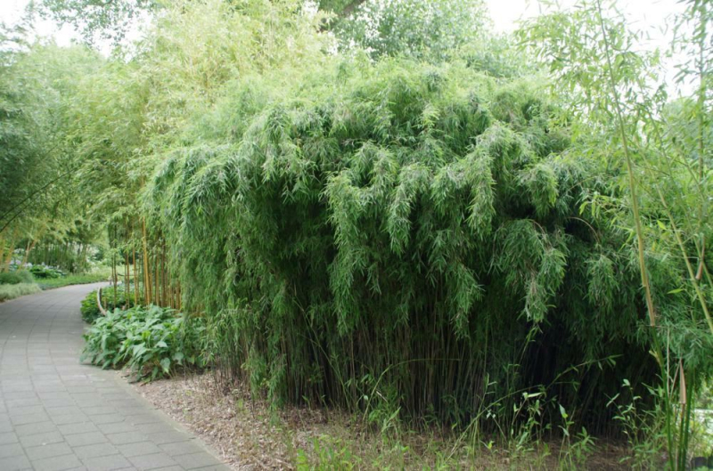 Einer der schönsten Klone der Gattung Fargesia. Er bildet einen kompakten, säulenförmigen, sehr dekorativen, dichten Horst. Die Farbe der Halme verändert sich im Laufe des Jahres, von grün über gelb, orange bis hin zu rot und violett.
