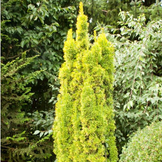 Säulenförmige, langsam wachsende Eibe von auffallend gelber Farbe. Im Schatten verblasst die gelbe Farbe der jüngsten Triebe. Ihre Färbung bleibt das ganze Jahr über erhalten. Im Herbst bildet sie kirschfarbene, kugelförmige Früchte. Die Eibe ist eine anspruchslose Pflanze. Höhe und Breite werden durch Rückschnitt reguliert. Die ganze Pflanze ist giftig. Für eine Hecke pflanzen Sie 2 - 3 Pflanzen pro 1 m. Sie sieht auch sehr gut in einem Topf auf dem Balkon oder der Terrasse aus.
