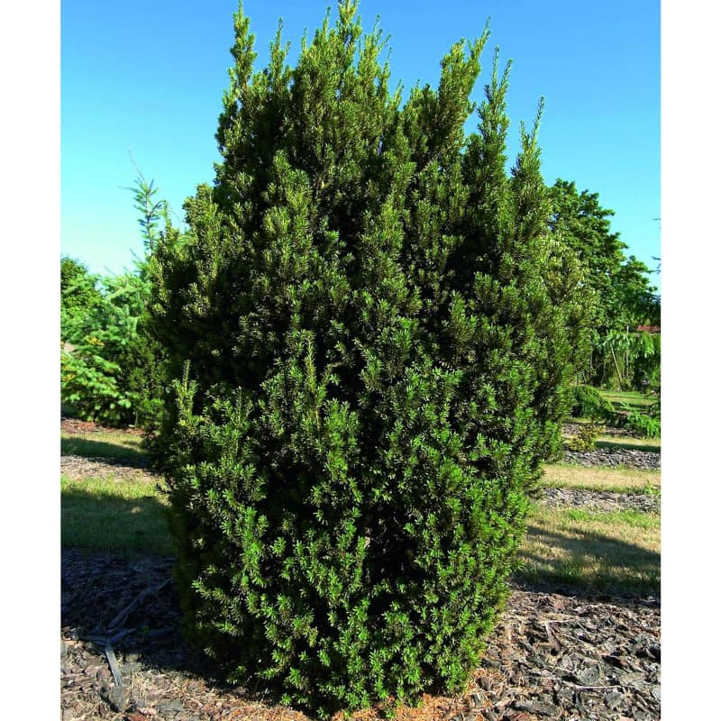 Die langsam wachsende Eibe wird 2 bis 3 Meter hoch und 0,5 bis 1,5 Meter breit. Die Eibe hat tiefgrüne, glänzende Nadeln, die Form des Strauches ist säulenförmig, später spreizt sie sich leicht nach oben hin. Über den Winter nehmen die glänzenden Teile des Baumes eine goldene Färbung an.
