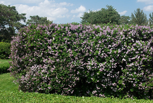 Syringa patula Miss Kim (Samtflieder) ist ein wahres Schmuckstück für den Frühlingsgarten. Der weiß-rosa blühende Zierstrauch wird etwa 1 m hoch. Die Blütentrauben sind üppig und bestehen aus zahlreichen flauschigen Blüten. Sie sind stark duftend und blühen im Mai, manchmal auch noch einmal in geringer Anzahl im Spätsommer. Er wächst mäßig schnell.
