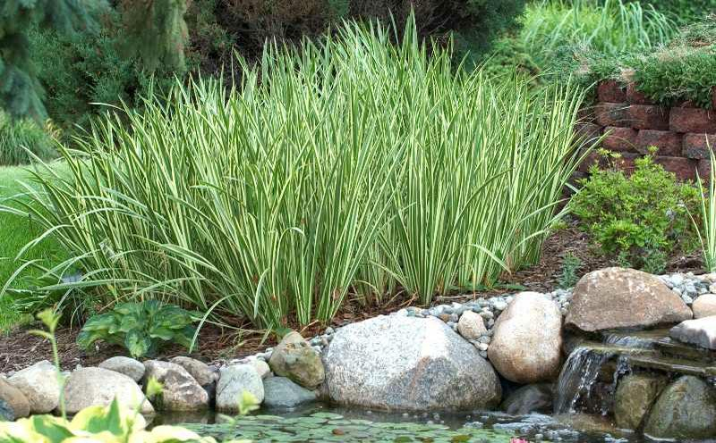 An den Rändern von Teichen gepflanzt, eignet sich der Buchsbaum für den Hintergrund und besticht durch die weißen Streifen auf den Blättern.