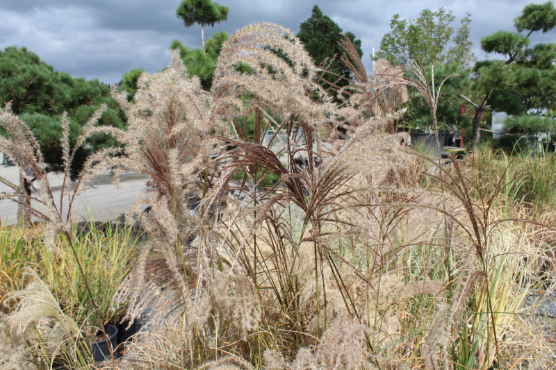 Graziella ist eine sehr auffällige Sorte chinesischer Zierpflanzen mit einem großen und schönen Blütenstand von silbrig-beiger Farbe. Sie blüht sehr früh - bereits im Juli/August, was für Zierblumen ungewöhnlich ist. Sie hat dünne, aber aufrechte, eher ungestielte, tiefgrüne Blätter von etwa 1,5-1,8 cm Höhe, und die Blütenstiele sind noch 30-50 cm höher. Aufgrund des Namens wird diese Sorte oft mit Gracillimus verwechselt, die zarter ist, mehr hängend und weniger und später blüht.