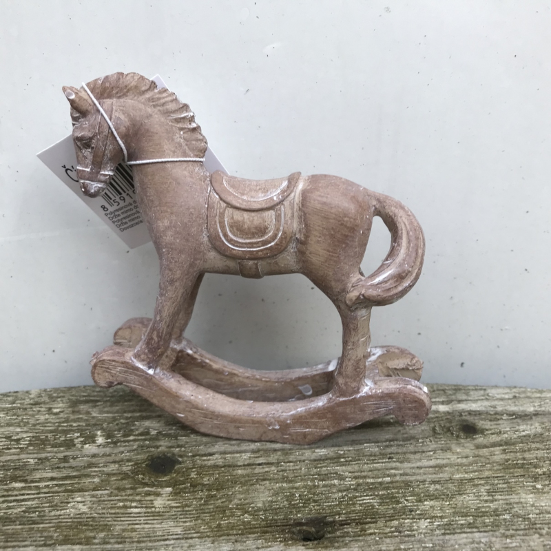 Dekoratives Schaukelpferd braunAbmessungen: 9 x 2,5 cm, Höhe 9cm.