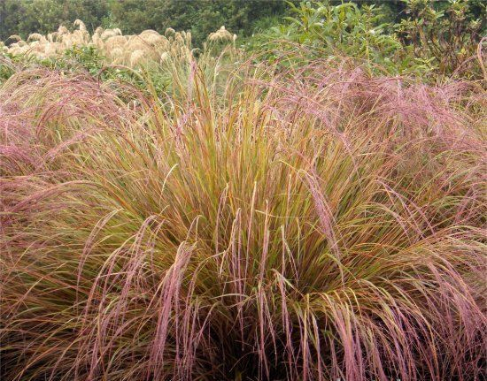 Kavyl Sirocco - ein sehr hübsches Gras, das bis zu 50 cm hoch und 40 cm breit wird. Es hat schmale, flache Blätter, die die ganze Saison über tiefgrün gefärbt sind. Im Herbst wird die Farbe noch interessanter, wenn die Blätter bronze-orange mit einem Hauch von Rot gefärbt sind. Die Färbung hält den ganzen Winter über an.