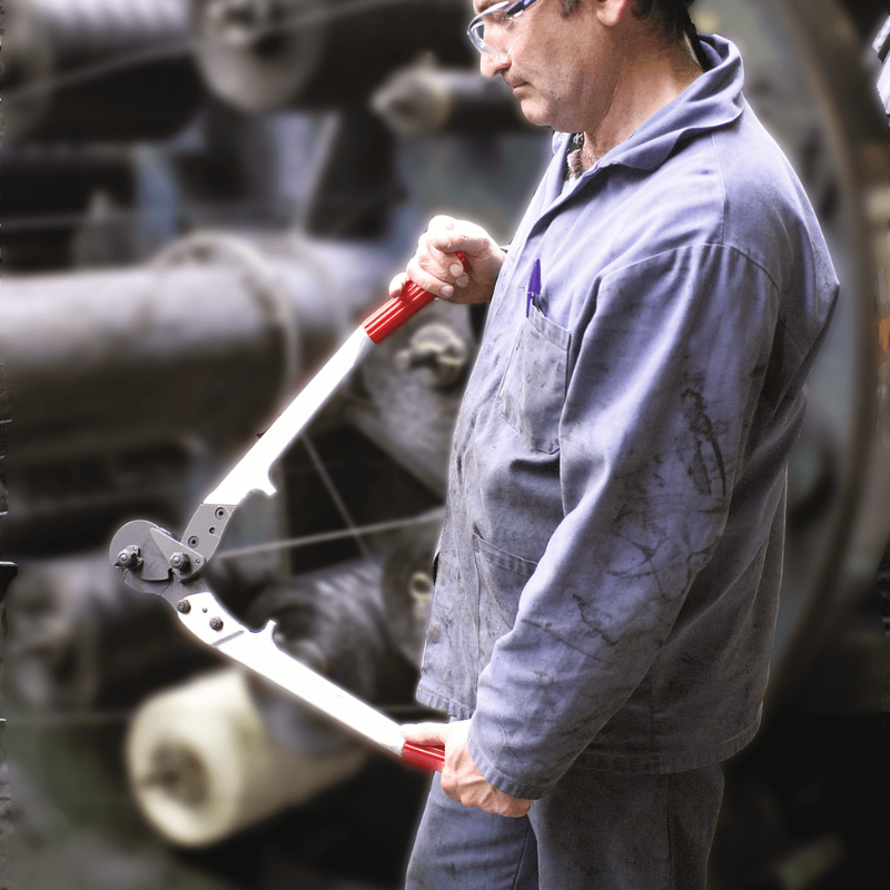 FELCO C112 Zange zum Schneiden von sehr harten Materialien, Draht und Stahlseilen bis zu 12,7 mm Durchmesser. Sie sind mit einem Kraftübertragungssystem ausgestattet, das es ermöglicht, die vom Benutzer ausgeübte Kraft zu erhöhen. Diese Scheren sind vor allem für die Erdöl-, Forst-, Energie-, Transport- und Telekommunikationsindustrie bestimmt.