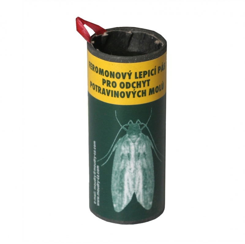 - Es handelt sich um eine klassische Fliegenklatsche, der ein Pheromon für Lebensmittelmotten zugesetzt ist. Dieses wird nach und nach von der Klebefläche freigesetzt und lockt die Männchen der vier Arten von Lebensmittelmotten an. Der Klebestreifen ist in der Lage, Motten aus einem großen Umkreis anzulocken, so dass eine Falle für ein Gebiet von 500 m3 ausreicht. Die Anziehungskraft und damit die Wirksamkeit auf Lebensmittelmotten ist sowohl durch Labortests als auch durch den Einsatz in der Praxis nachgewiesen.