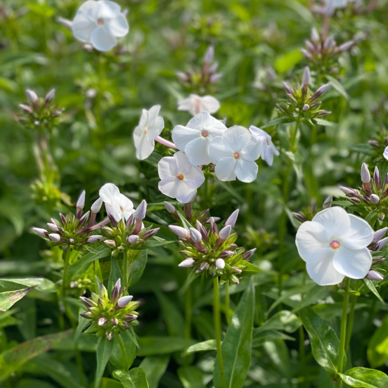 Phlox paniculata David ist eine beliebte weißblühende Sommerstaude, die 90-120 cm hoch wird. Die Blüte beginnt im Sommer und hält bis in den Herbst hinein an. Sie ist eine klassische Beetstaude, die seit Generationen in unseren Gärten wächst.