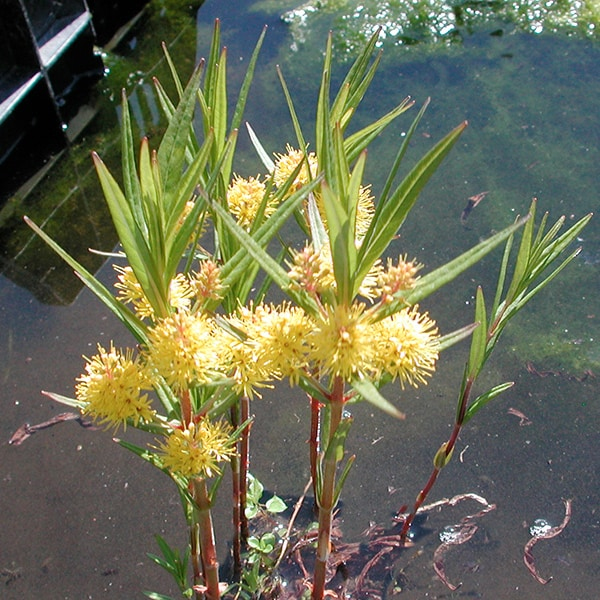 Wächst an den Ufern von Seen und Teichen und gelegentlich an Bächen. Es ist ein aufrechtes, mehrjähriges Kraut, das bis zu 60 Zentimeter hoch wird und gelbe Blüten trägt.Es blüht von Juni bis August. Pflanzen Sie es in voller Sonne und im Halbschatten.