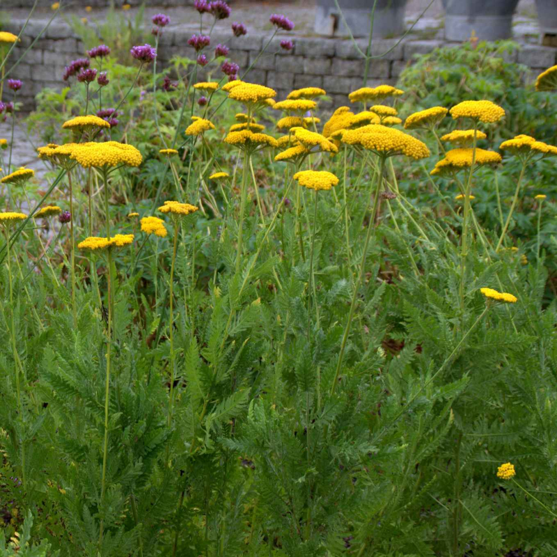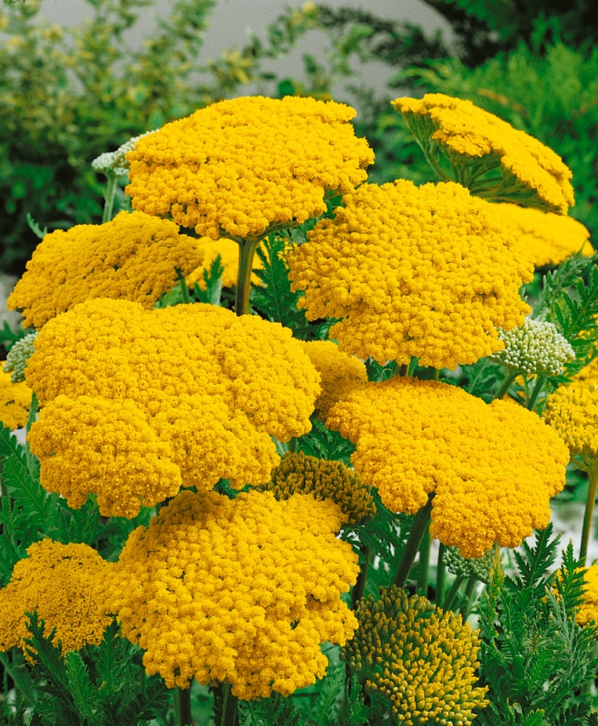 Cloth of Gold ist eine sehr robuste Staude, die einen Teppich aus dunkelgrünen Blättern bildet. Die Blüten sind in großen gelben Büscheln angeordnet.