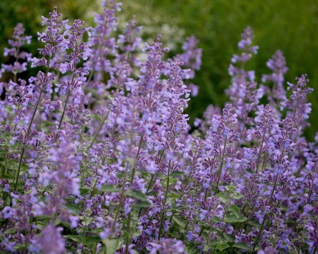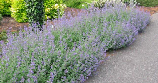 Nepeta grandiflora Six Hills Giant ist eine hochwachsende Rohrkolbenart mit graugrünem Laub. Ab dem späten Frühjahr, fast bis zum Frost, erscheinen blassviolette Blüten an den Pflanzen, die gerne von nützlichen Insekten gefressen werden.