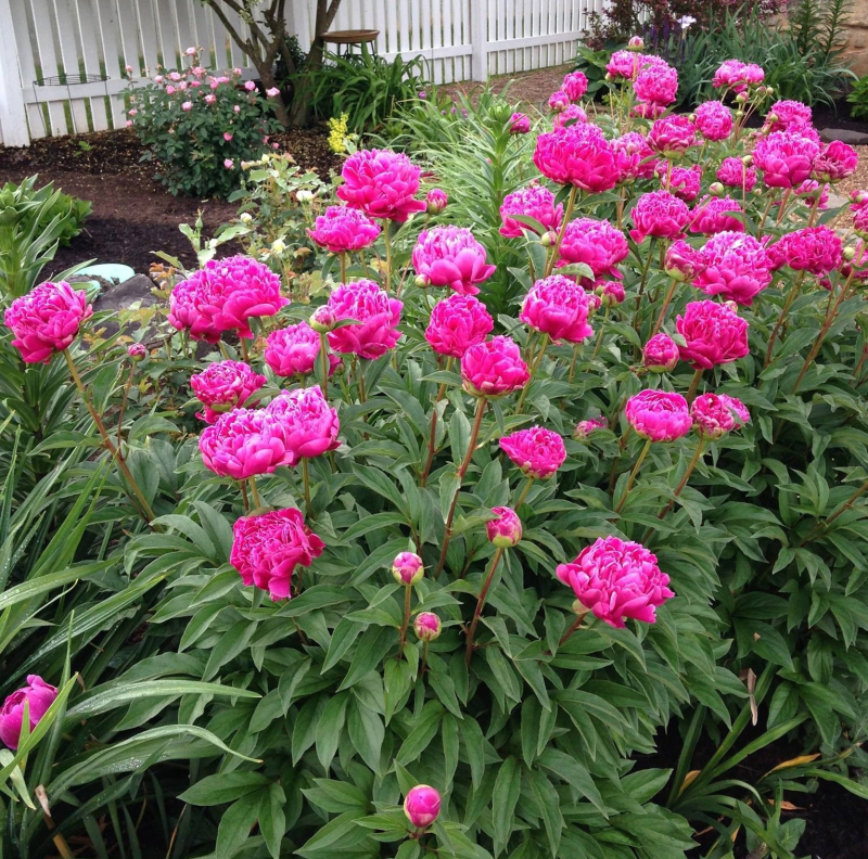 Karl Rosenfield ist eine halbwüchsige Sorte mit tiefroten bis tiefrosa Blüten. Die Blütenknospen sind zum Schneiden und Trocknen geeignet.