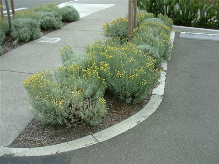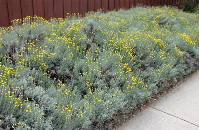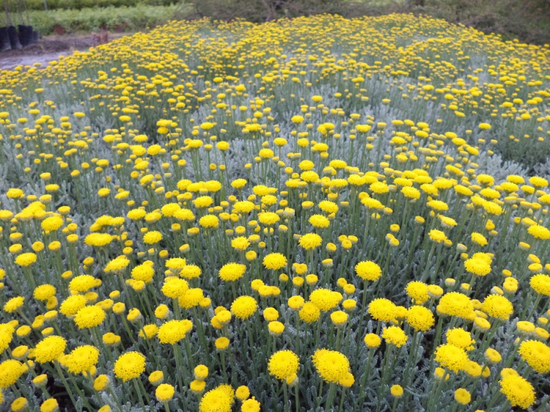 Semi-immergrüne Staude, bildet unverwechselbare kugelige Blütenstände von leuchtendem Gelb.