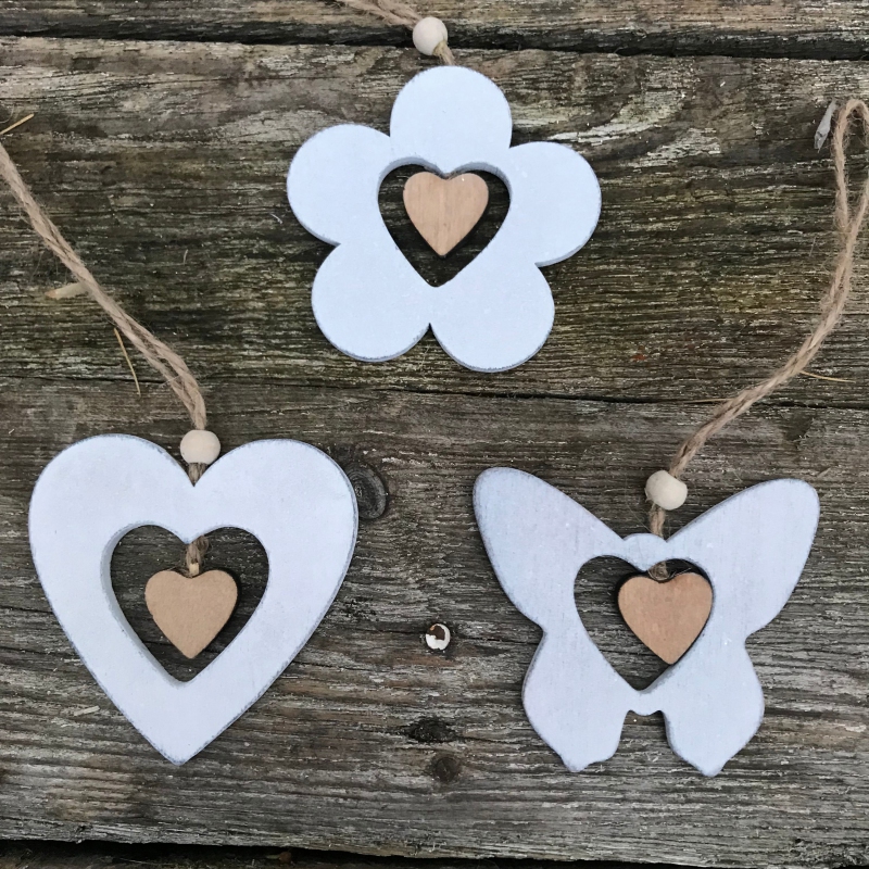 Holzdekoration mit Engel zum Aufhängen mit Donuts