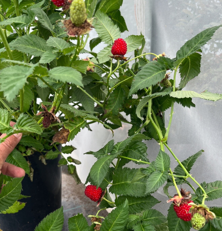 Eine attraktive Kreuzung zwischen Himbeere und Erdbeere mit roten Beeren von ausgezeichnetem Geschmack. Der Geschmack ist stark aromatisch, süß. Sie ist für den direkten Verzehr oder für Desserts geeignet. Leicht zu züchten.