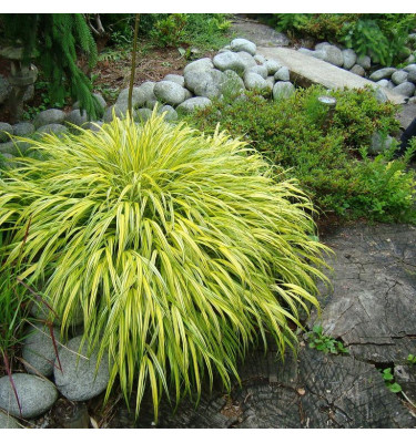 Hakonechloa macra Aureola ist seit langem eine der beliebtesten Ziergräser-Sorten. Sie wird besonders wegen ihres dichten Wuchses und ihres zuverlässigen Wachstums geschätzt, wobei sie auch im Unterholz einen durchgehenden Wuchs bilden kann. Die Blätter haben abwechselnd gelbe und grüne Längsbänder. Im Herbst dominiert eine ausgeprägte goldene Farbe.