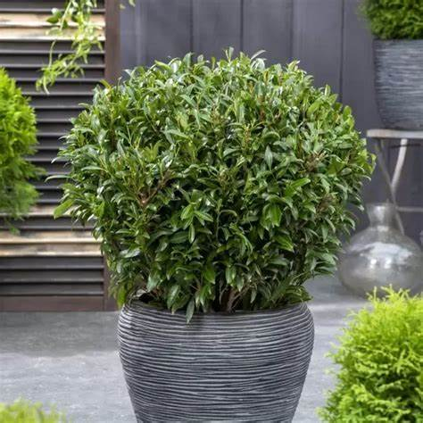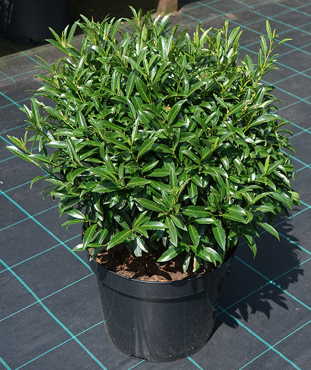 Sofia - die ursprüngliche Sorte des Lorbeers mit schmalen, sägezahnförmigen, dunkelgrünen Blättern. Er wächst innerhalb von zehn Jahren auf eine Höhe und Breite von 1,5 m. Der Wuchs des Strauches ist rundlich, lässt sich aber durch regelmäßiges Beschneiden sehr gut in Form bringen. Er ist auch für Hecken geeignet. Die Pflanze ist voll winterhart bis -24 °C.