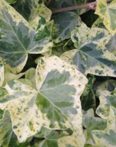 MARMORATA Efeu zeichnet sich durch 3-lappige, kleine grüne Blätter mit weißen Zierflecken aus. Im Winter haben die Blätter eine rosa Färbung.