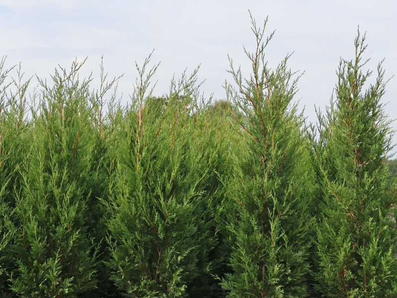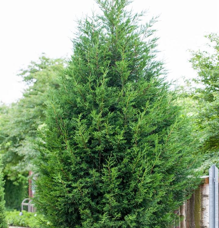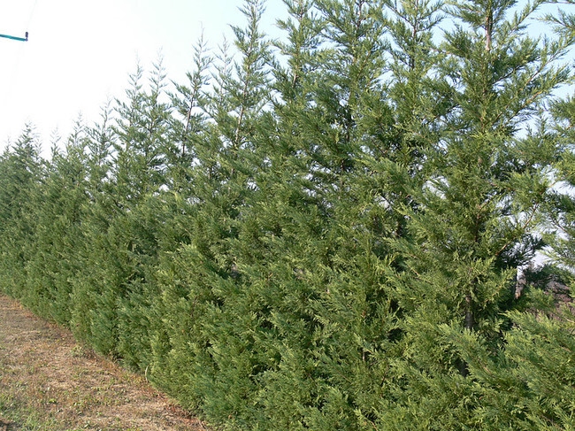 Die Leyland-Zypresse ist die am schnellsten wachsende Konifere, die sich für Hecken eignet. Sie wächst mit einer Geschwindigkeit von bis zu 1 Meter pro Jahr. Sie ist eine der beliebtesten Pflanzen für die Formgebung. Wenn sie frei wächst, entwickelt sie sich zu einem massiven, aufrechten, kegelförmigen Baum. Er hat dunkelgrüne Nadeln, die in flachen Büscheln angeordnet sind. Er verträgt eine gute Scherung.