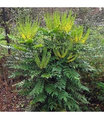 Mahonia VOLCANO ist eine kompakte Sorte, die durch ihr tiefgrünes, gefiedertes Laub und ihre ungewöhnliche Blüte besticht. Die kugelförmigen, winzigen Blüten, die aus den Stängeln wachsen, sind orange-gelb und gehen aus kupferroten Knospen hervor. Die Sorte hat keine Dornen, die Blätter sind sehr schmal und ähneln Farnblättern. Sie erreicht eine Höhe von bis zu 1 m und ist damit ideal für kleinere Gärten. Diese Sorte ist das ganze Jahr über dekorativ und bis zu -15 Grad winterhart.