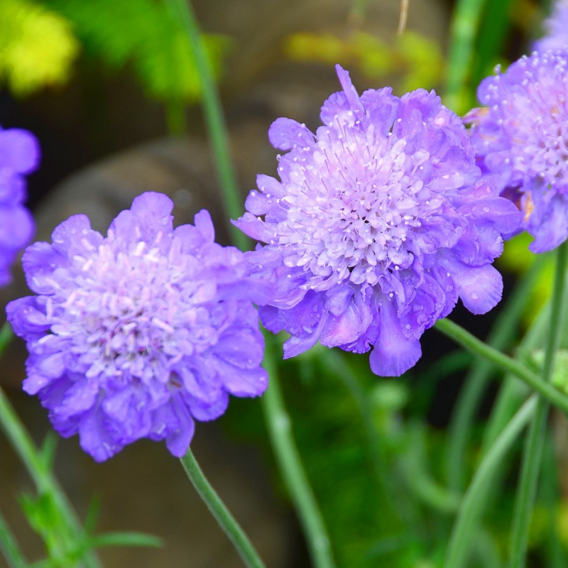 Die einheimische Art ist sowohl in Europa als auch im Kaukasus verbreitet und kommt in Kleinasien oder Nordafrika vor. Scabiosa columbaria Mariposa Blue besteht aus einem kompakten Büschel graugrüner Blätter. Mit ihren auffallend großen, violett-blauen Blüten ist sie eine interessante Ergänzung für Staudenbeete. Sie blüht vom Frühsommer bis zum Spätherbst und ist besonders in Felsenbeeten beliebt.