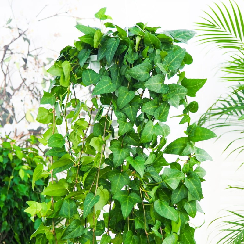 Mittelgroße immergrüne Kletterpflanze. Herzförmige Blätter 3-lappig, Blätter grün bis dunkelgrün. Kleine, gelb-grüne Blüten in runden Dolden, die sich nur an den Endtrieben entwickeln. Anspruchslose Kletterpflanze und Bodendecker, wächst auch unter Bäumen und im tiefen Schatten.