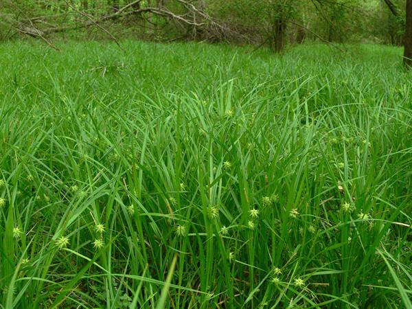 Die Graue Segge ist ein mehrjähriges Straußgras, das in Nordamerika heimisch ist. Hier wächst sie an feuchten Stellen in Laubwäldern, Waldlichtungen und an Flussufern. Die Blätter sind während der gesamten Vegetationsperiode saftig grün.