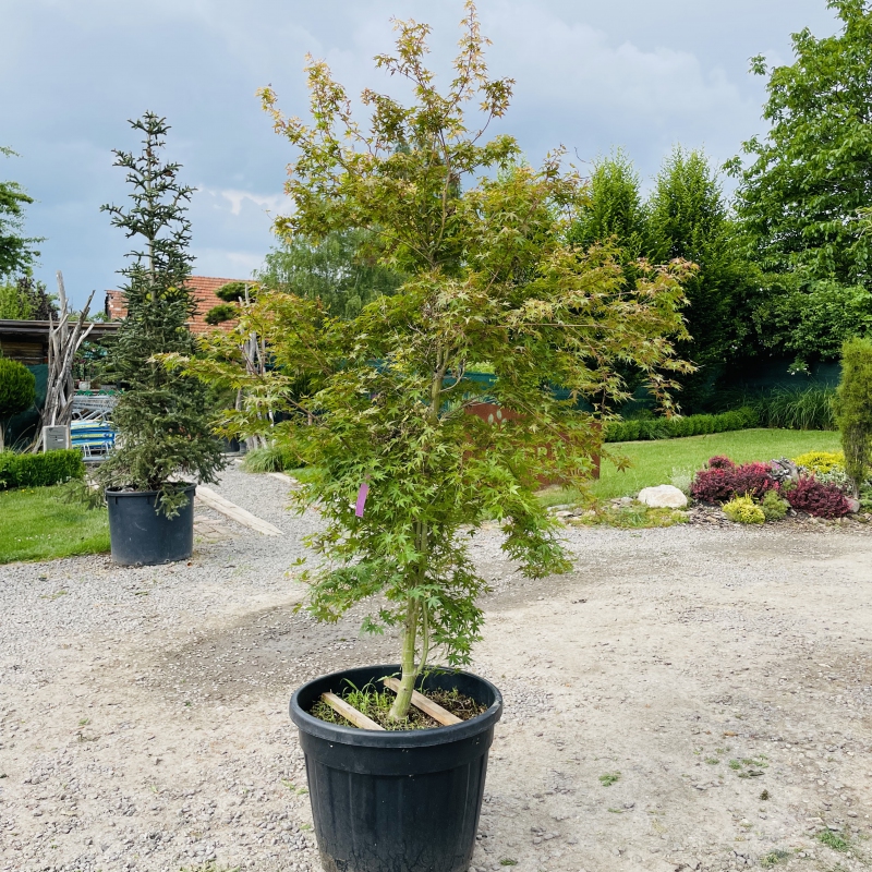 Katsura ist ein wundervoller kleiner Baum (bis zu 4 m hoch) oder großer Strauch für einen kleineren Garten, wo er einen außergewöhnlichen Farbakzent setzt, der fast das ganze Jahr über anhält. Wenn die gelappten Blätter im Frühjahr zum ersten Mal erscheinen, sind sie leuchtend orange, verfärben sich aber schnell in ein Orange-Gelb mit einem rosa Rand. Mit der Zeit geht die Farbe in ein tiefes Grün über, aber im Herbst wechselt das ganze Blatt erneut die Farbe und nimmt einen leuchtend orangefarbenen Ton an, bevor es abfällt.