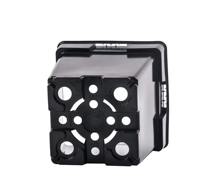 Das Design der quadratischen Pflanzgefäße ermöglicht eine einfache und sparsame Anordnung der Pflanzen. Drainagelöcher am Boden sorgen für die richtige Feuchtigkeit und schützen vor stehendem Wasser.