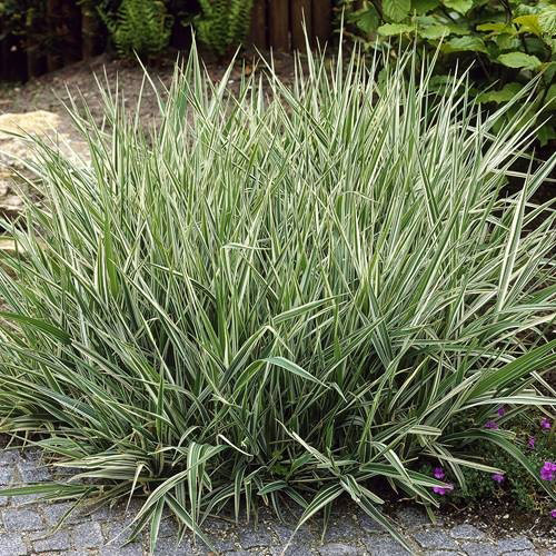 Phalaris arundinacea Picta ist eine sehr beliebte Sorte in Ziergärten und Parks. Die Blätter sind mit grünlich-weißen Bändern verziert, die sich vertikal abwechseln.