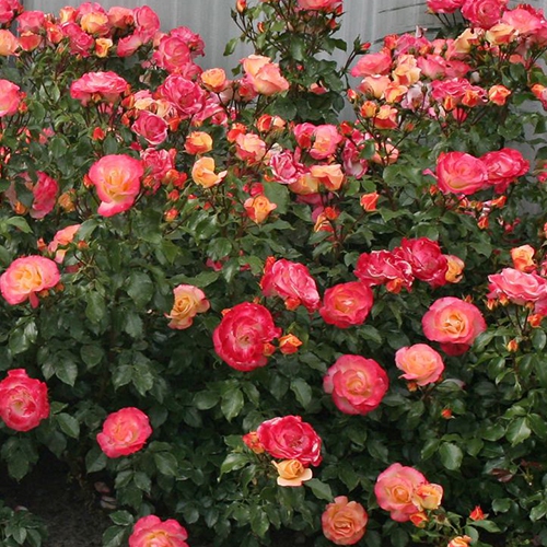 Die Airbrush-Rose ist eine wunderschöne Rose mit einem Ausbruch von orangefarbenen Blüten. Perfekt geformte, mittelgroße Blüten, wie mit einem Pinsel gemalt. Sie hat einen aufrechten, dichten Wuchs mit glänzend grünen Blättern. Sie macht sich sehr gut in gemischten Gruppenpflanzungen oder im Topf auf dem Balkon oder der Terrasse.