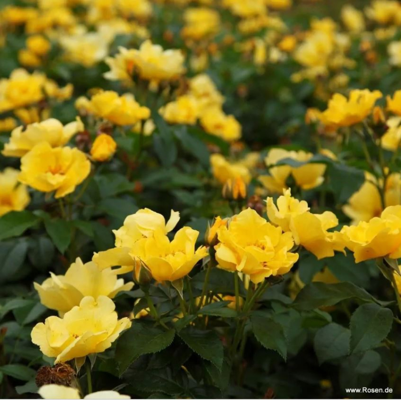 Die Rose Lemon Fizz verzaubert mit einer Flut von einfachen Blüten in leuchtendem Zitronengelb. Die Blüten werden durch Staubgefäße in der Mitte der Blüte ergänzt, die einen schönen Kontrast zu den dunkelgrünen, glänzenden Blättern bilden. Ihre Farbe verblasst auch unter ungünstigen klimatischen Bedingungen nicht. Sie ist sehr widerstandsfähig gegen Rosenkrankheiten. Sie ist eine der neueren Sorten, sie wurde 2017 gezüchtet.
