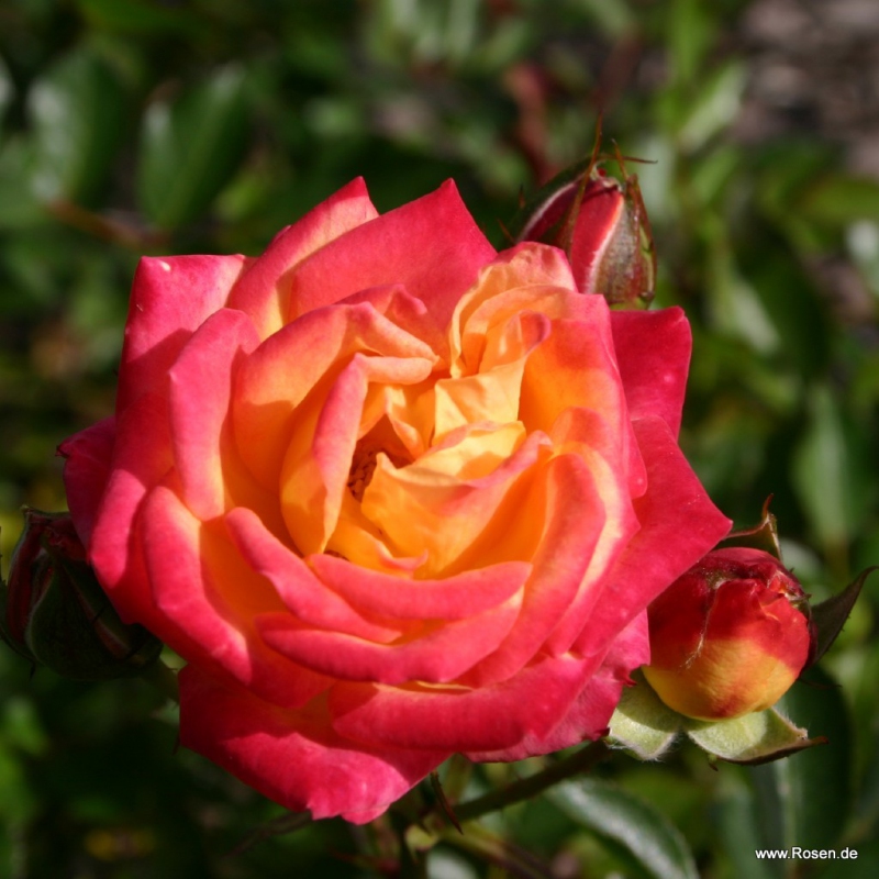 Miniaturrosette in attraktiver Blütenfarbenkombination mit gelber Mitte und rotem Blütenrand, auch hervorragend für Container geeignet.