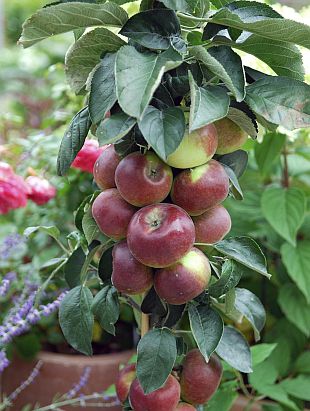 CUMULUS Wintersäulenapfelbaum reift in der zweiten Hälfte des Oktobers. Die Form ist kugelförmig, groß. Die Farbe ist gelb-grün mit hellroten Wangen. Das Fruchtfleisch ist weich, süß und angenehm aromatisch. Die Äpfel werden im Oktober geerntet und können bis März gelagert werden. Die Sorte ist resistent gegen Schorf.
