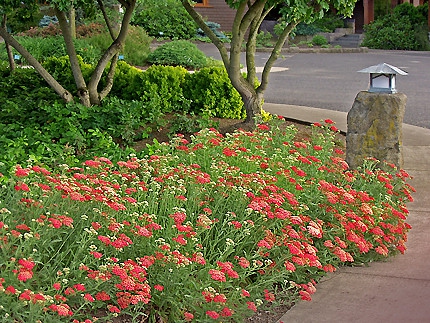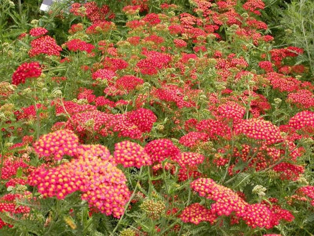 Dies ist eine sehr robuste Staude, die einen Teppich aus dunkelgrünen Blättern bildet. Ihre Blüten sind in großen Büscheln von kräftigem Rot angeordnet, die nicht verblassen.