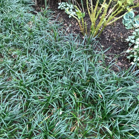 Ophiopogon japonicus Minor, auch Nippel genannt, ist eine kompakte und langsam wachsende Sorte, die sich perfekt für kleinere Gärten oder Steingärten eignet. Die Pflanze bildet dichte Büschel aus schmalen, dunkelgrünen Blättern, die an Gras erinnern. Die Blätter werden 8-10 cm lang und fühlen sich fest und glänzend an. Im Sommer können kleine weiße bis hellviolette Blüten erscheinen, die unscheinbar sind, aber der Pflanze einen subtilen Charme verleihen.