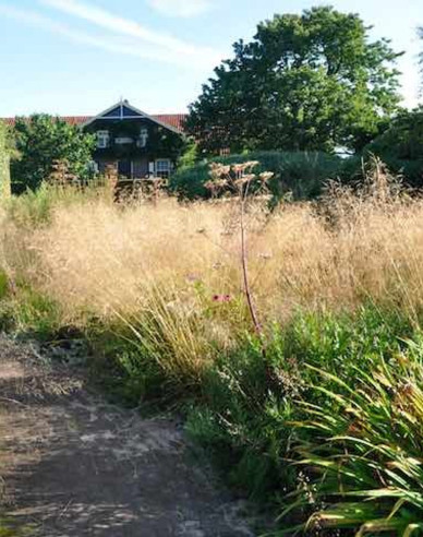 Ein hervorragendes Gras in Kombination mit Stauden, mit denen in größeren Mengen ein Wieseneffekt entsteht.