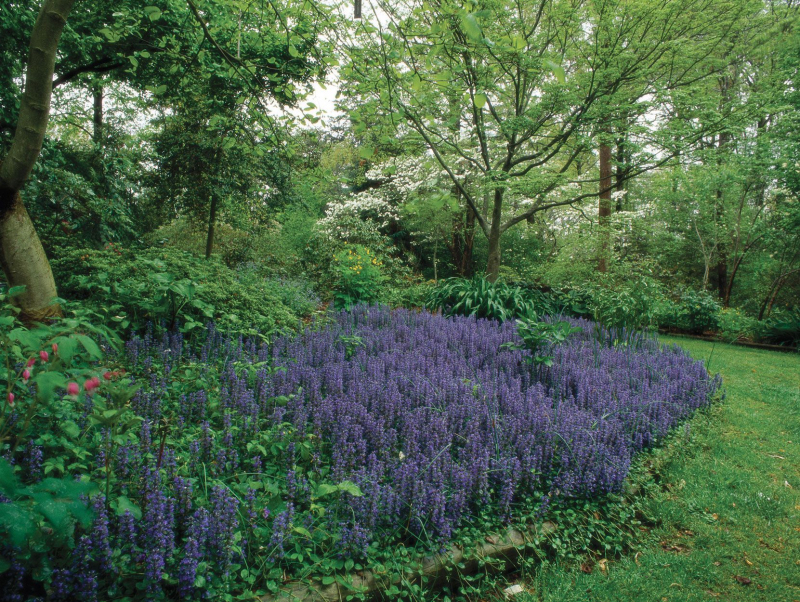 Sie bevorzugt feuchtere und nährstoffreichere Böden, meist an halbschattigen Standorten, an den Rändern von Wasserläufen und in Laubwäldern. Sie wächst von den Niederungen bis zum oberen Waldrand. Sie bildet bodenständige Blattrosetten, von denen aus sie sich durch luftige Ausläufer in die Umgebung ausbreitet. Sie eignen sich besonders für Unterholz, als Rasenersatz, für die Pflanzung in größeren Gruppen und zur Bildung verschiedener Rabatten. Sie sind auch für Steingärten und verschiedene Gefäße geeignet. Sie sind standort- und bodenschonend. Sie bevorzugen feuchte und nasse Böden an einem leicht sonnigen bis schattigen Standort. Sie hat leicht gewellte, weiß-silbergrüne Blätter, die sich im Schatten und in der Kälte rosa-violett verfärben. Sie blüht ab April mit blauen, in einer Ähre angeordneten Blüten.