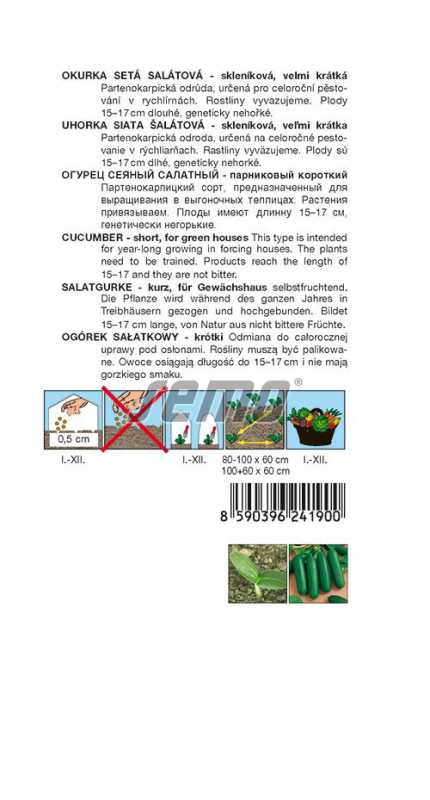 Eine sehr frühe parthenokarpische Salatgurke. Sie hat sehr kurze Früchte von 15-17 cm Länge. Die Früchte sind mittel- bis dunkelgrün, mit stumpfen Enden. Sie haben eine feste Schale und sind kurz lagerfähig. BABY ist für den ganzjährigen Anbau in Gewächshäusern, Polytunneln und Plastiktunneln geeignet. Sie kann auch für die Produktion von Mini-Pickles verwendet werden, d. h. für 8 bis 10 cm langes Salatgrün. In diesem Fall sollten sie mindestens jeden zweiten Tag geerntet werden.
