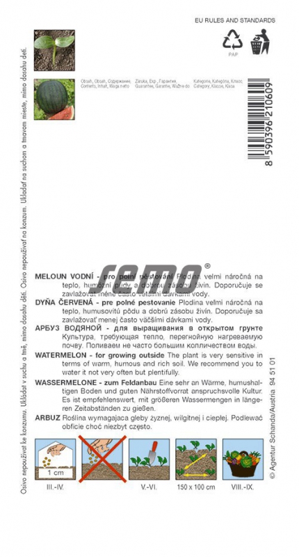 Eine Pflanze mit hohem Wärmebedarf, die empfindlich auf Temperaturschwankungen, lang anhaltende Regenfälle und Winde reagiert. Benötigt leichtere, kalorienreiche, humose und gut mit Nährstoffen versorgte Böden. Mitte Mai aus vorgezogenen Setzlingen in einer Größe von 90-120 × 40-50 cm gepflanzt, wobei in den wärmsten Gebieten der Boden mit Plastikfolie gemulcht werden sollte. Bewässerung mit viel Wasser. HTS 30 g. 1 g Samen enthält 30 - 35 Samen.