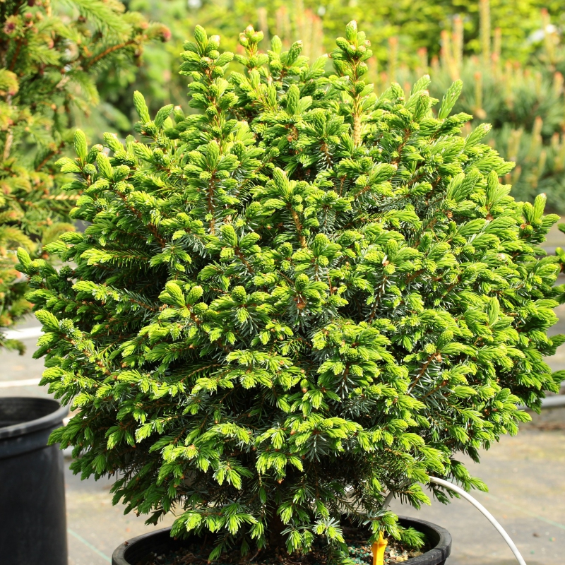 Wie die meisten Nadelbäume hat auch die Balkanfichte eine eigene dichte, kompakte und niedrige Sorte namens Nana. Sie ist eine dicht verzweigte, langsam wachsende, zwergige, immergrüne Konifere mit einer kugeligen oder breit kegelförmigen Form. Sie wächst jährlich etwa 7-15 cm und erreicht bei der Reife eine Höhe von 1,5-2,5 cm.