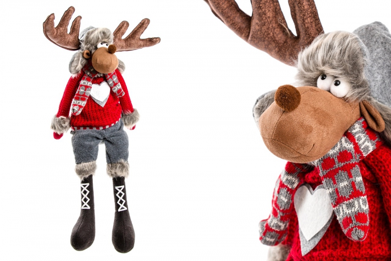 Maskottchen Rentier mit Winterkleidung. Sieht schön aus unter dem Weihnachtsbaum. Es ist eine perfekte Ergänzung für die festliche Atmosphäre. Auch ideal als Dekoration an der Haustür. Die Höhe der Figur beträgt ca. 60 cm.