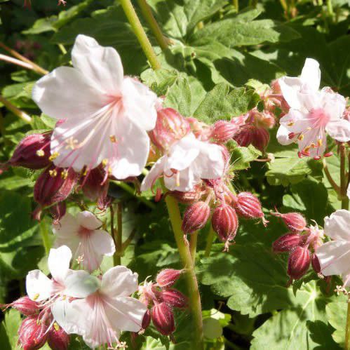 Der Erdnuss-Hahnenfuß Spessart blüht mit einfachen, fünfblättrigen, weißen Blüten von Mai bis Juli. Die Blüten sind kleiner und heben sich schön von den grünen, handförmig gelappten Blättern ab, die sich im Herbst verfärben. Die ganze Staude wird bis zu 40 cm hoch.