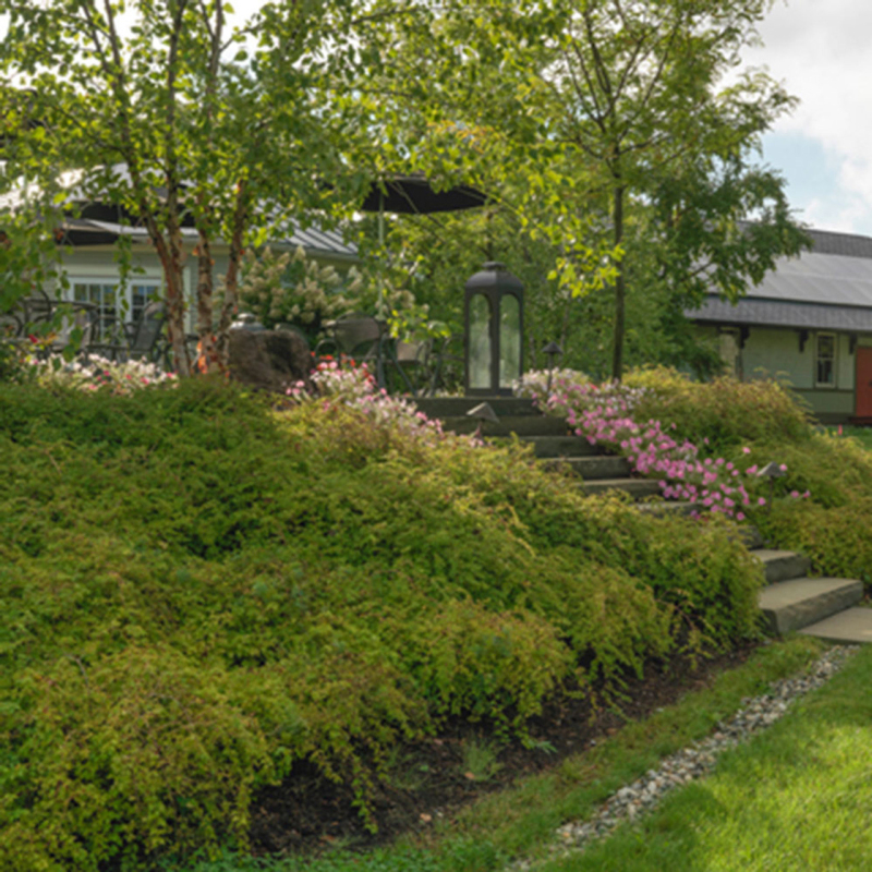 Stephanandra incisa ’Crispa’ eignet sich hervorragend zur Abdeckung von Hängen, zur Bepflanzung von Mauern und Gehwegen. Er wächst schnell und kann in kurzer Zeit eine große Fläche bedecken. Die Sorte CRISPA hat hellgrüne Blätter mit gezacktem Rand, die sich im Herbst orange und rot färben. Sie bildet kleine weiße Blüten und zieht Schmetterlinge an.
