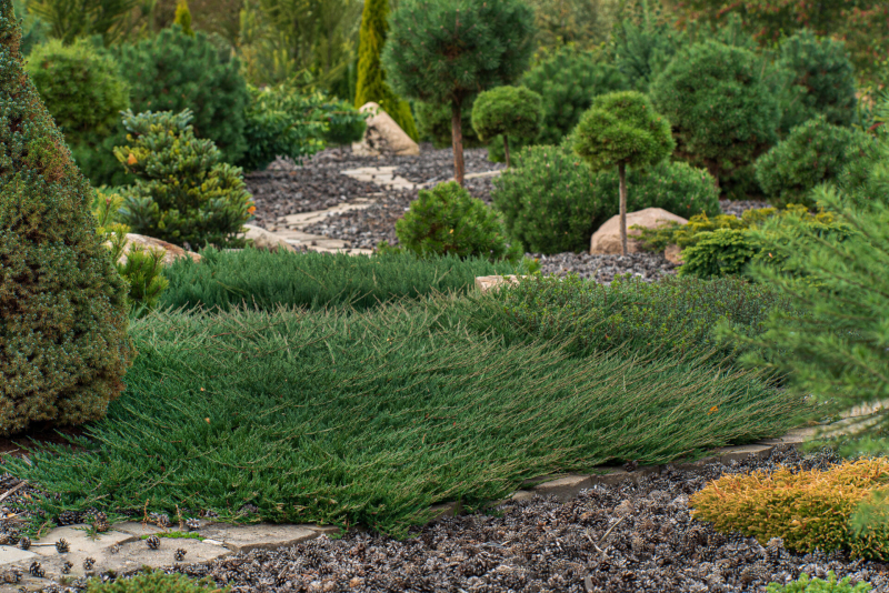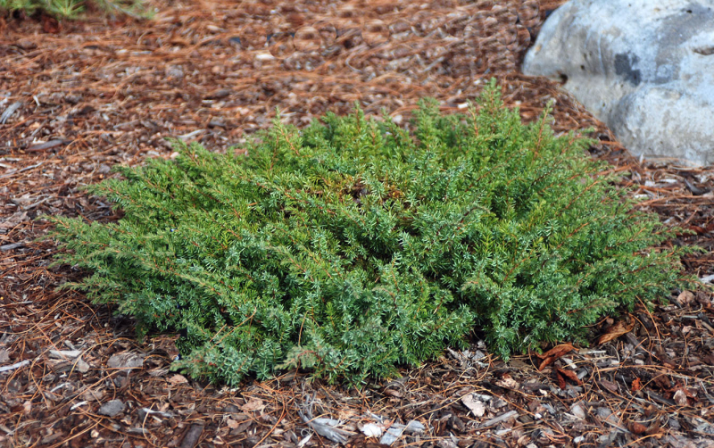 Die Nadelfarbe ist grün,gehört zu den unteren Wacholderarten mit einem dichten, breiten, ausladenden Wuchs.