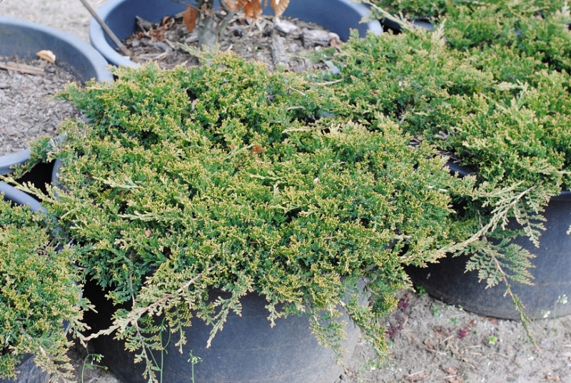 Einer der niedrigsten bodendeckenden blaugrünen Wacholder mit weichen Trieben. Eine bewährte bodendeckende Wacholdersorte, die zu den anspruchslosesten gehört. Der Wuchs ist niedrig, kompakt, dicht verzweigt mit einer Höhe von etwa 10 cm. Die Nadeln sind weich, nicht stachelig, blaugrün. Die 10-jährige Pflanze hat einen Durchmesser von 1,5 m. Aufgrund seiner Wuchsqualität eignet er sich für Hänge, wo keine häufige Pflege erforderlich ist.