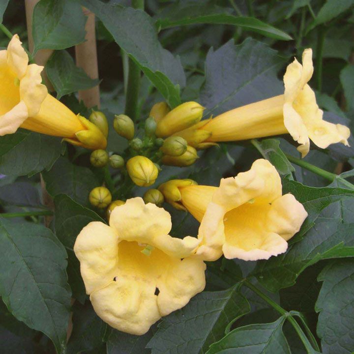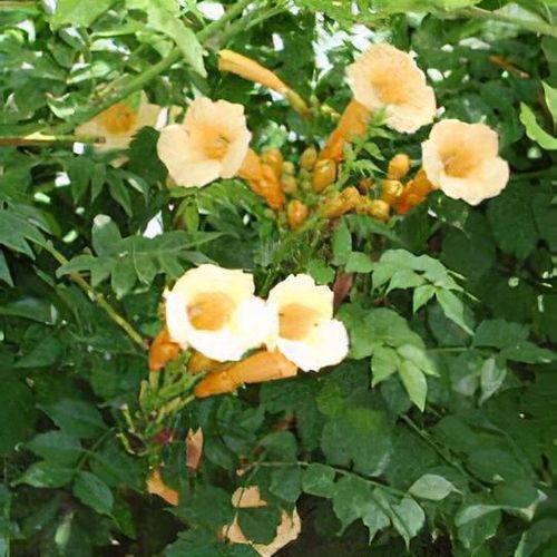 Flava ist ein klassischer Vertreter der nordamerikanischen Trompeter. Die röhrenförmigen Blüten sehen aus wie 5-6 cm lange, offene Trompeten und haben eine tief leuchtende goldgelbe Farbe. Die sommergrünen Blätter sind groß und hellgrün. Die Blütezeit ist sehr spät - Ende April.
