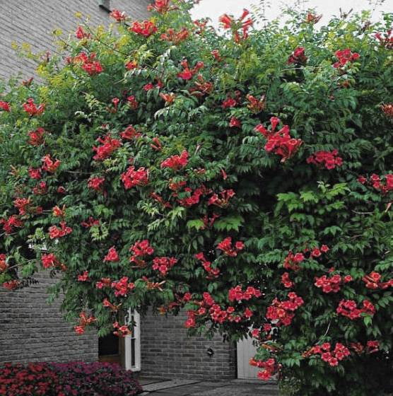 Eine schöne, unprätentiöse Kletterpflanze, die ihren Namen von ihren röhrenförmigen Blüten hat, die groß und markant sind und sich sehr schön an Pergolen zeigen. Die Pflanze verträgt auch Sonne gut und ist bodenschonend. GABOR ist eine schnell wachsende, laubabwerfende Liane, die schon nach wenigen Jahren einen dichten Hintergrund aus grünem Laub bilden kann. Sie wird 2 bis 6 m hoch und blüht von Juli bis September mit interessanten, trichterförmigen, roten Blüten, die eine große Anziehungskraft auf Insekten ausüben. Die Blätter sind laubabwerfend, gefiedert und von dunkelgrüner Farbe.